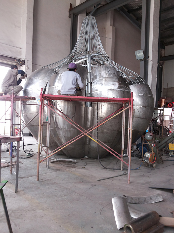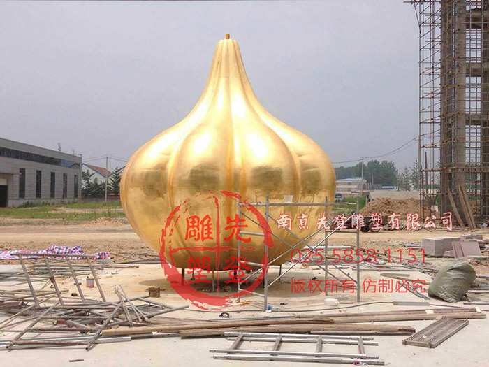 案列名稱:不銹鋼貼金箔大蒜雕塑